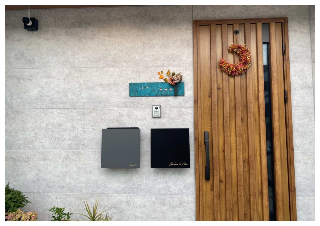 外観が単調な色合いになっていたので、あえて表札を目立たせる青銅色しました!!