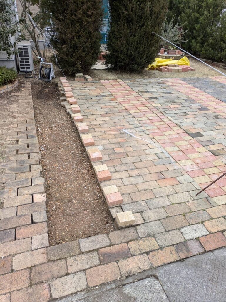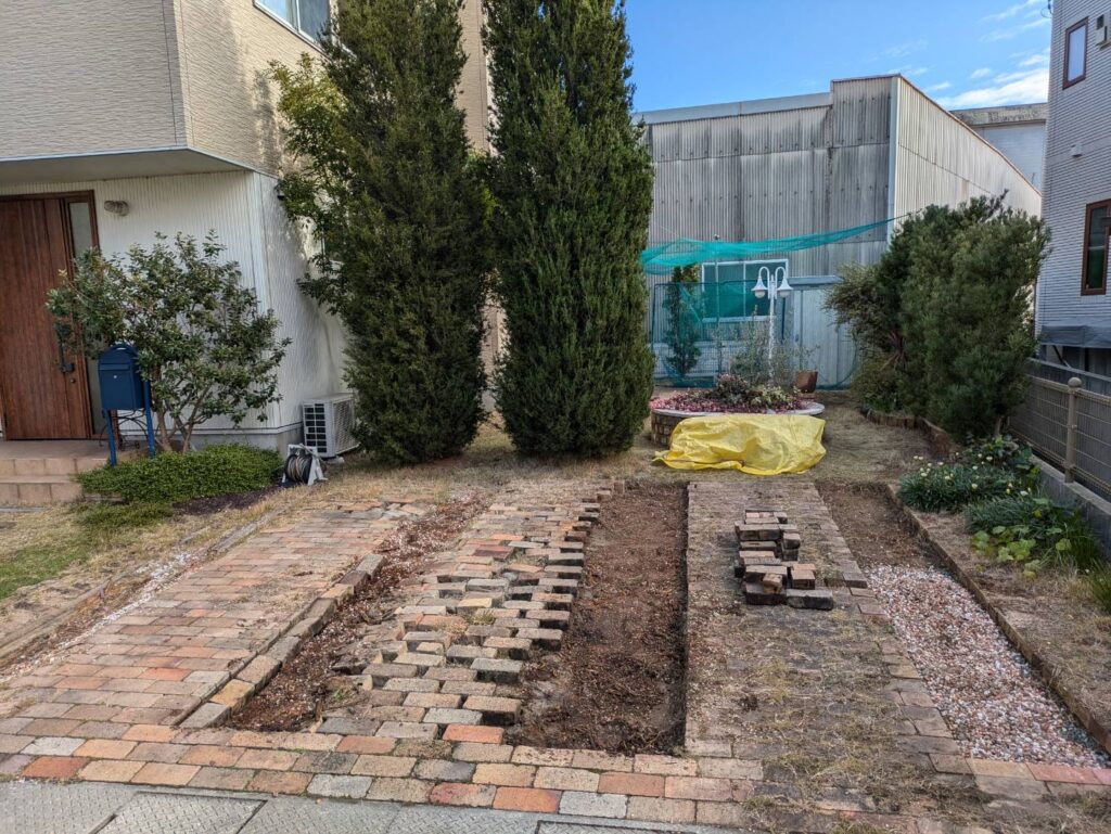 そこを、DIYの得意なお友達に協力をお願いして新たなレンガを敷くというDIYです。