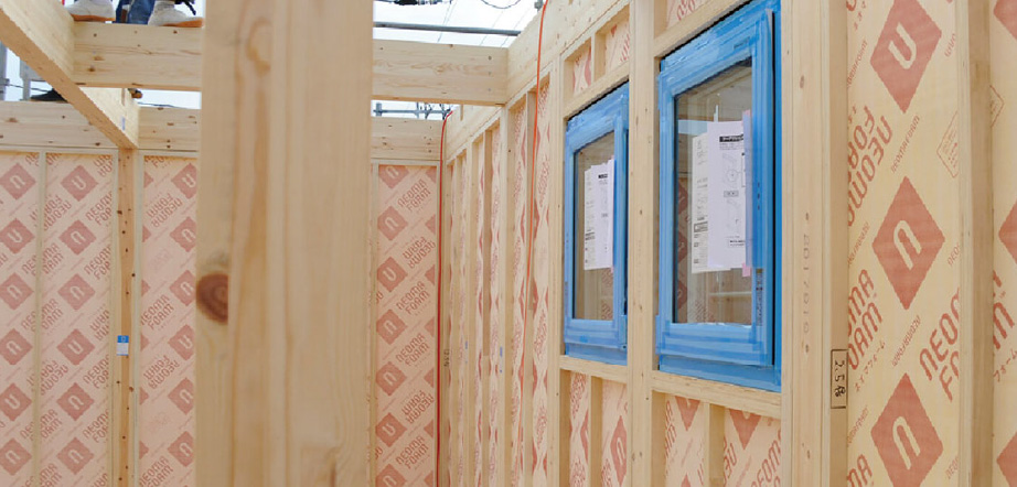 構造躯体は、木造住宅では他にないサッシ一体型の「未来パネル」を採用しています。