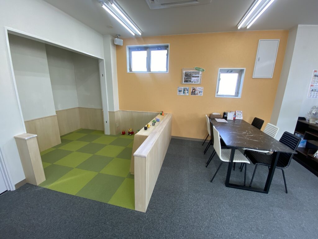 ショールームには、キッズコーナーやオムツ替えスペースも